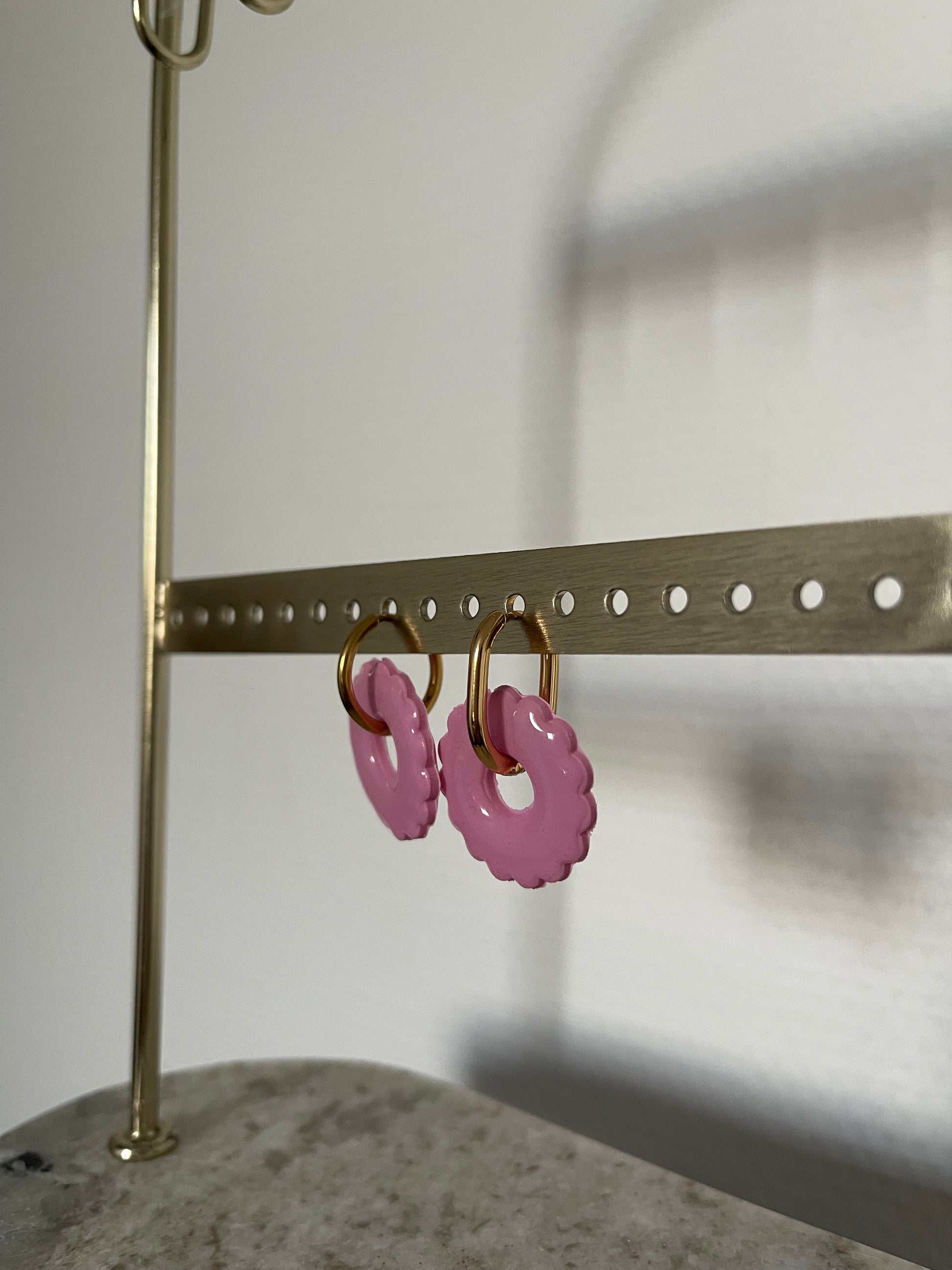 Confectionnés à la main en pâte polymère et protégés par une fine couche de résine époxy, accompagnés de créoles en acier inoxydable.