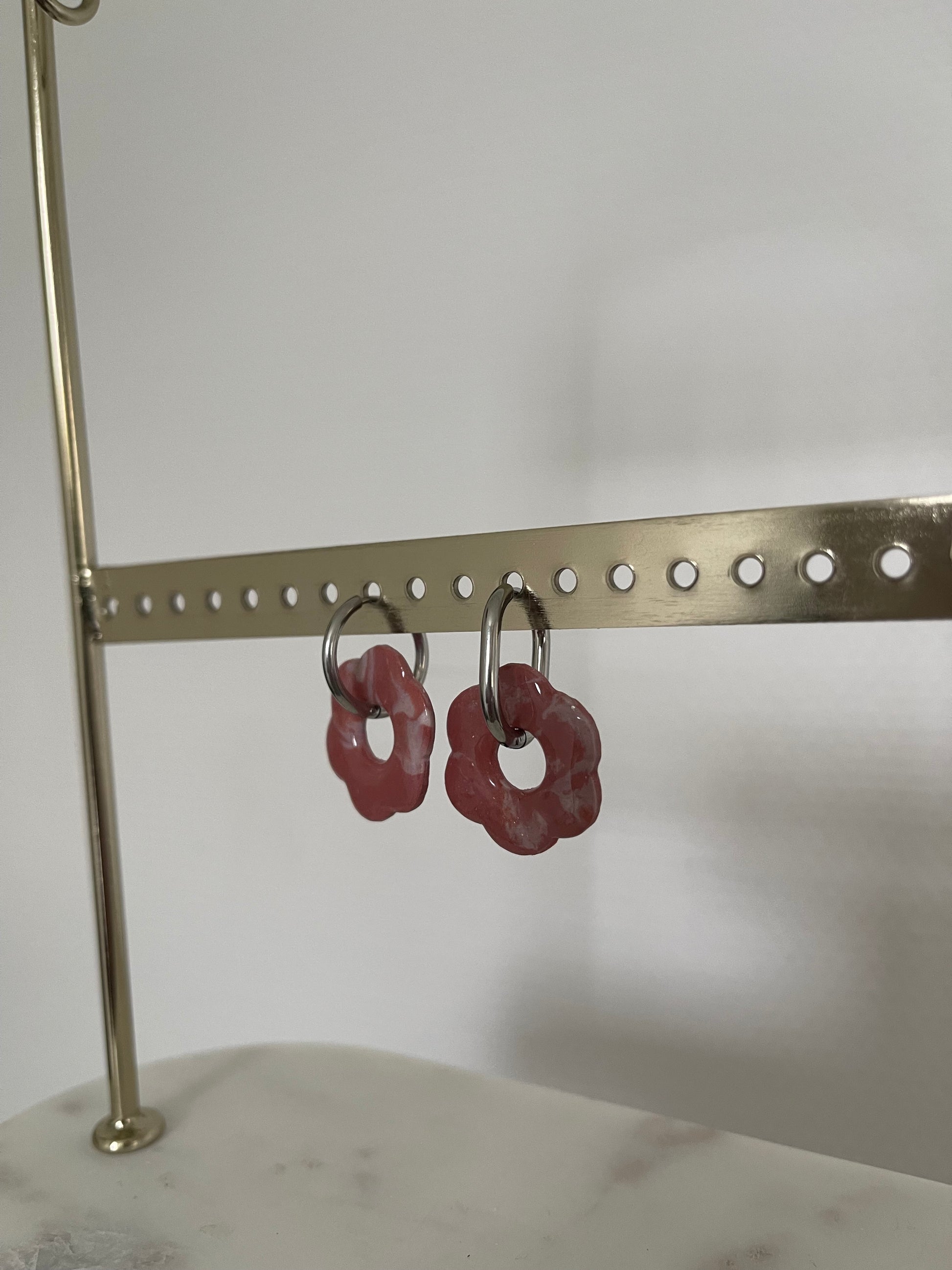 Confectionnés à la main en pâte polymère et protégés par une fine couche de résine époxy, accompagnés de créoles en acier inoxydable.